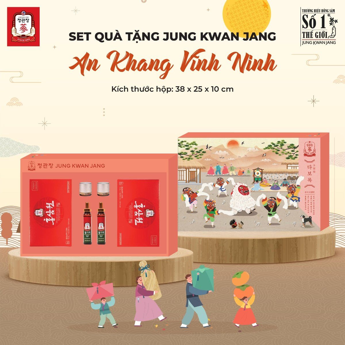 Set quà hội tụ tinh hoa hồng sâm KGC Jung Kwan Jang – bí quyết chăm sóc sức khỏe toàn diện, giúp nuôi dưỡng thể lực, tăng cường năng lượng và nâng cao sức sống. Một lựa chọn ý nghĩa để gửi gắm lời chúc thịnh vượng và trường an.
